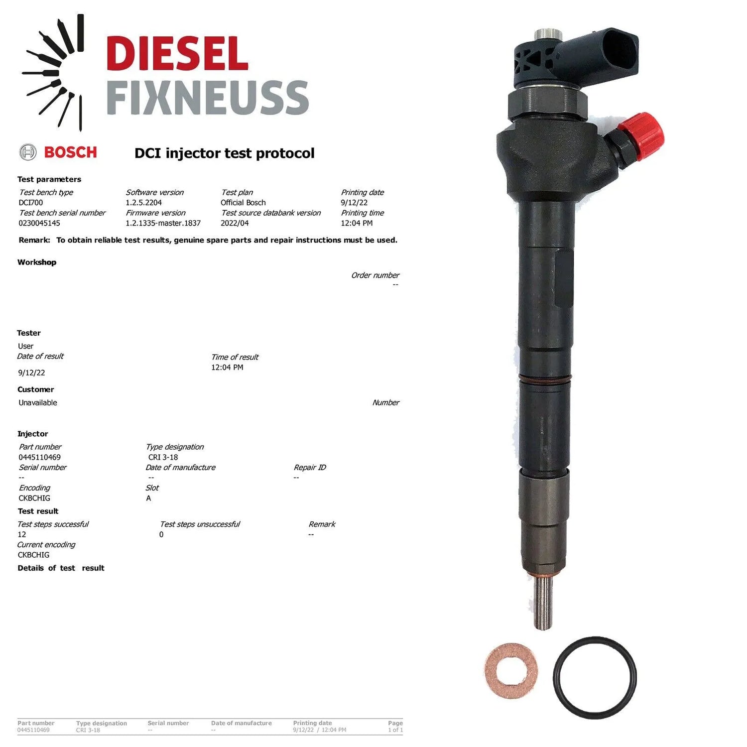 1x Inyector AT incl. anillo de sellado de cobre + junta tórica + informe de prueba entregado.