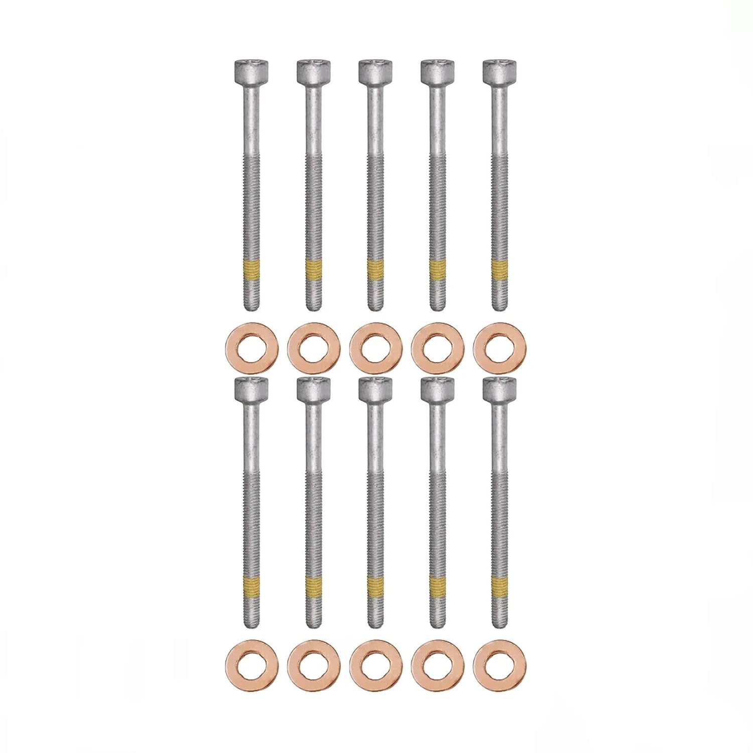 Ce kit se compose d'une vis de fixation d'injecteur haute résistance et d'une rondelle d'étanchéité en cuivre (3,0 mm d'épaisseur). Ces deux composants sont utilisés lors des travaux d'entretien ou de réparation pour garantir une fixation sûre et une étanchéité fiable au niveau du siège de l'injecteur.