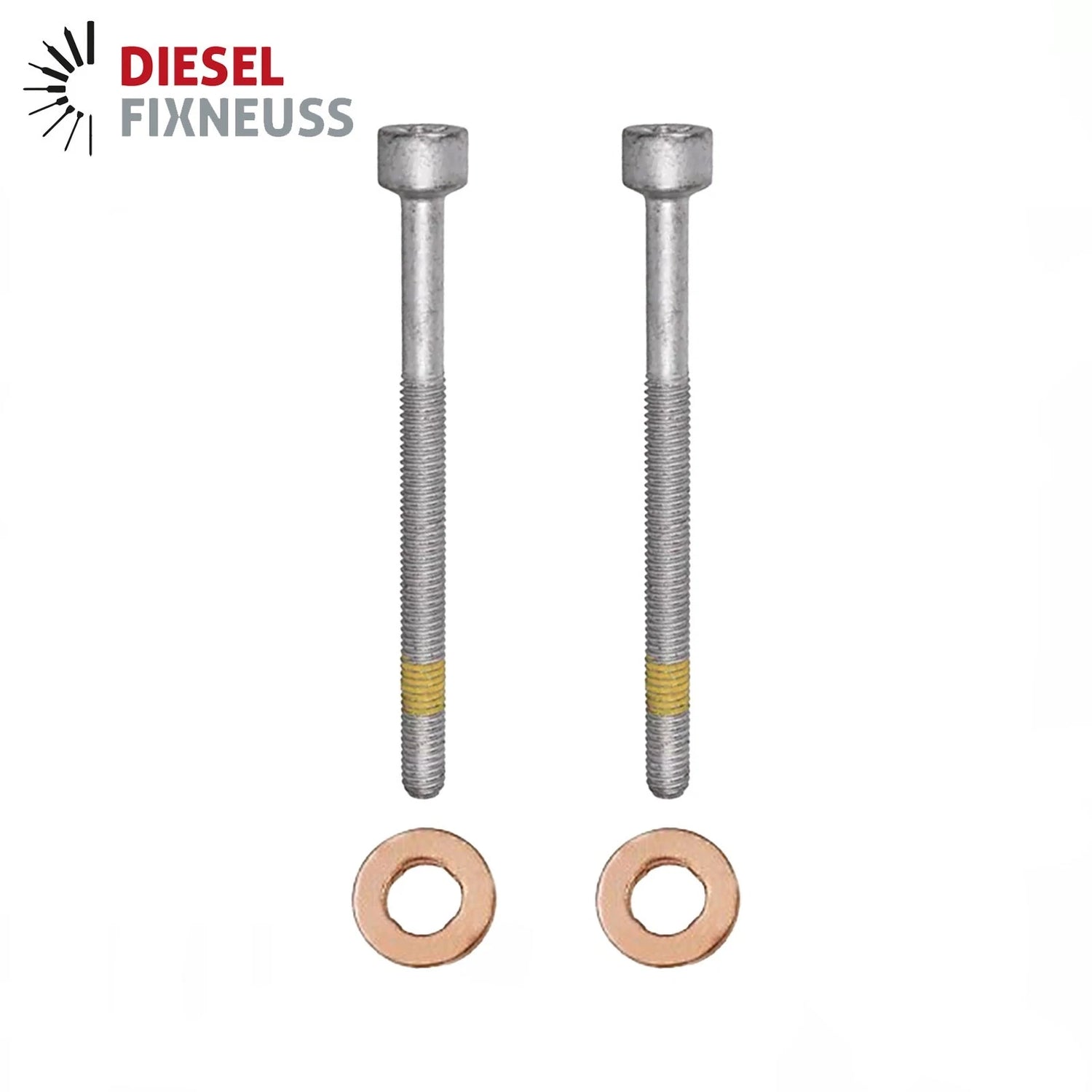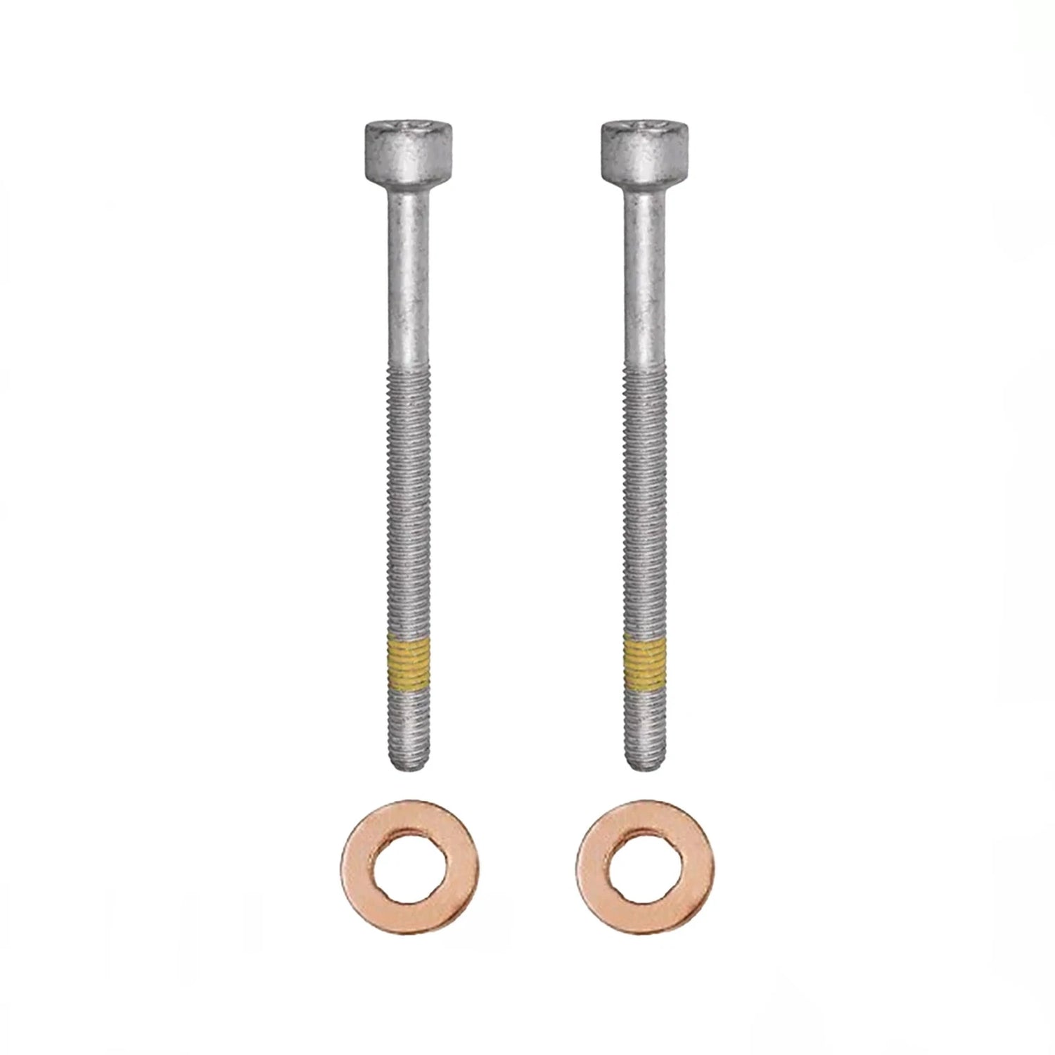 Ce kit se compose d'une vis de fixation d'injecteur haute résistance et d'une rondelle d'étanchéité en cuivre (3,0 mm d'épaisseur). Ces deux composants sont utilisés lors des travaux d'entretien ou de réparation pour garantir une fixation sûre et une étanchéité fiable au niveau du siège de l'injecteur.