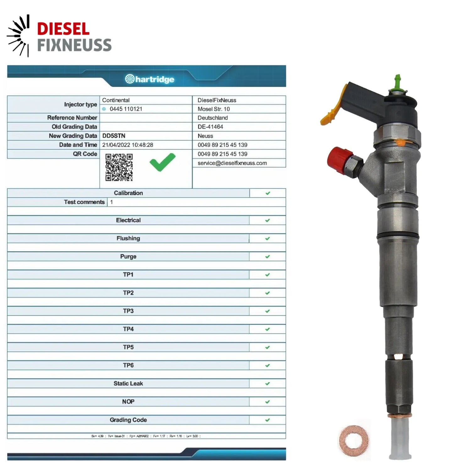 1x Injecteur rapport de test livré.