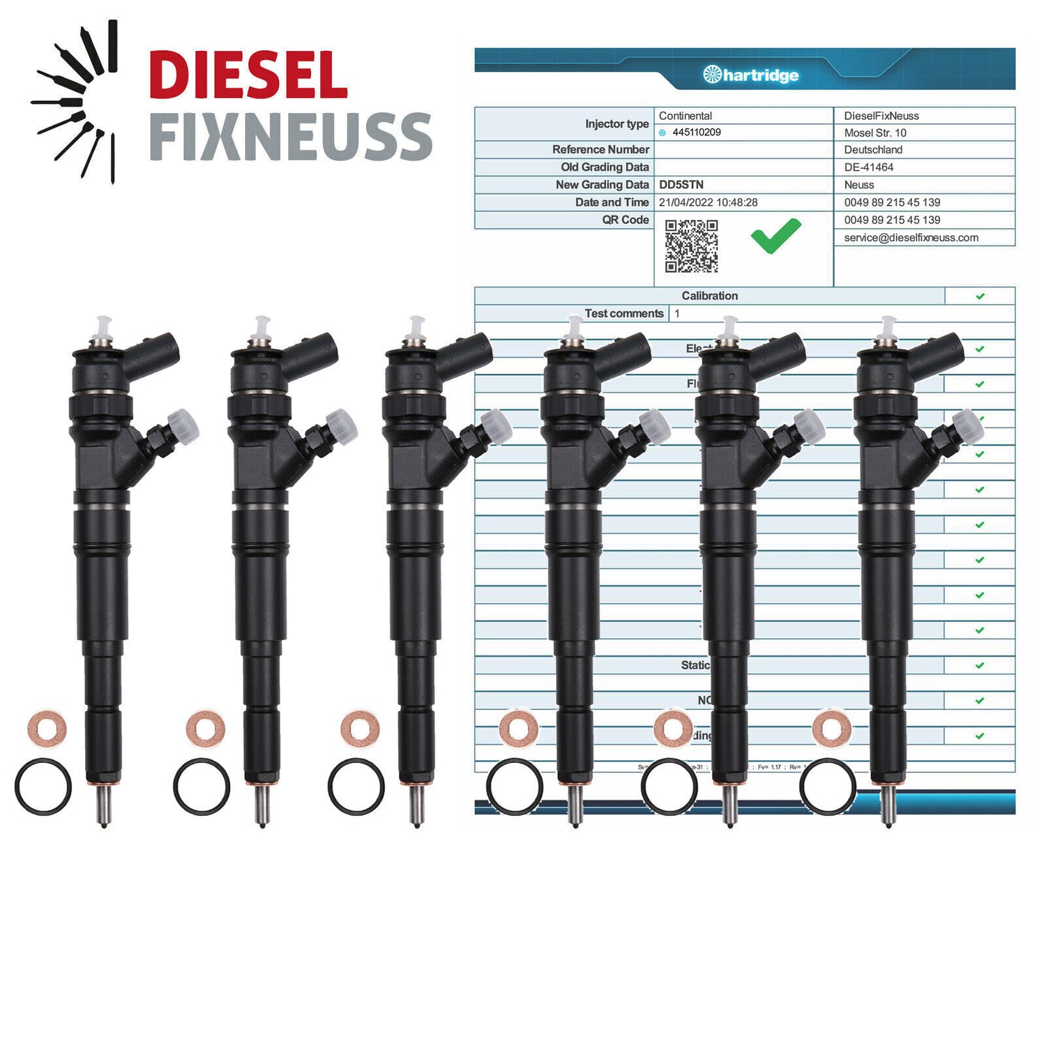 6x Iniettore AT incl. anello di tenuta in rame + O-ring + rapporto di prova consegnato.