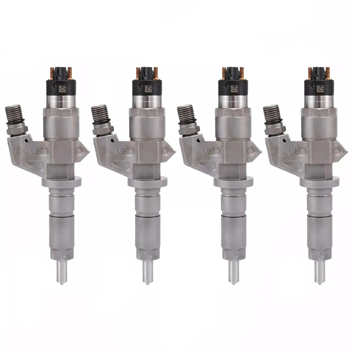 4x BOSCH injector 0445120008 for GMC ISUZU CHEVROLET 6.6L diesel engines. Compatible with LBZ engine codes. OEM quality replacement part.
